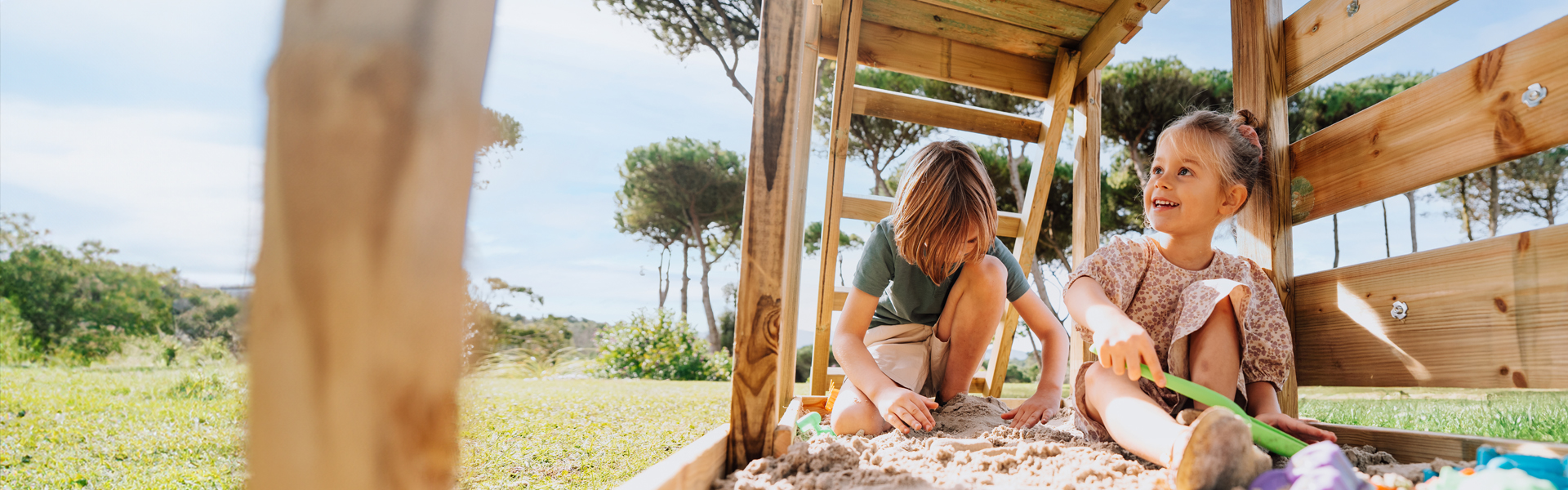 Naast jarenlang speelplezier staat vooral de veiligheid van je kinderen bij ons voorop. Daarom gebruiken wij voor onze buitenspeeltoestellen uitsluitend hoogwaardig, drukgeïmpregneerd hout. De impregnatie beschermt het hout tegen alle weersinvloeden en garandeert een lange levensduur. Ontdek de eindeloze speelmogelijkheden die Wickey te bieden heeft en creëer nu jouw eigen outdoor-speelparadijs!